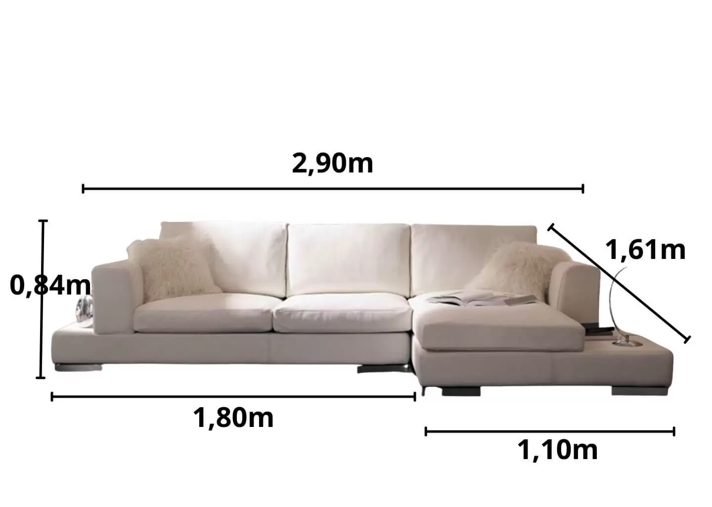 COMPRIMENTO SOFÁ MONTADO: 2,90 m x 1,61 m