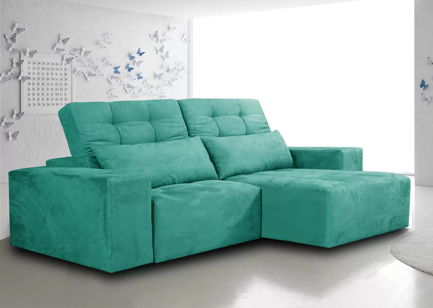 ENCOSTO: Reclinável, de almofadas Fixas, com enchimento Fibra de PoliésterSiliconizada