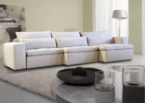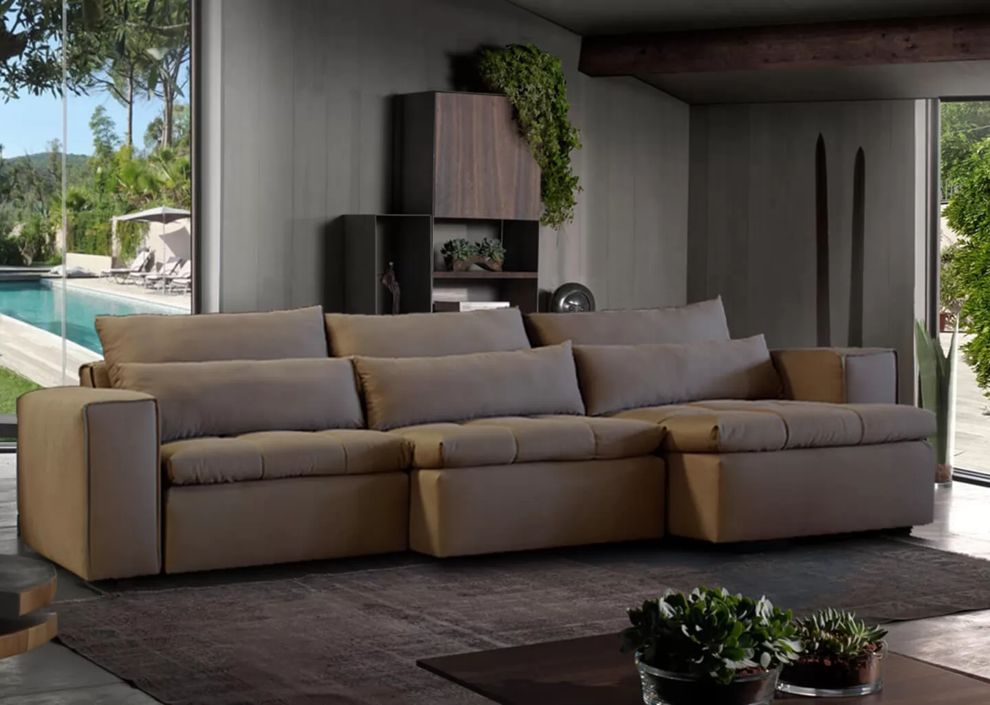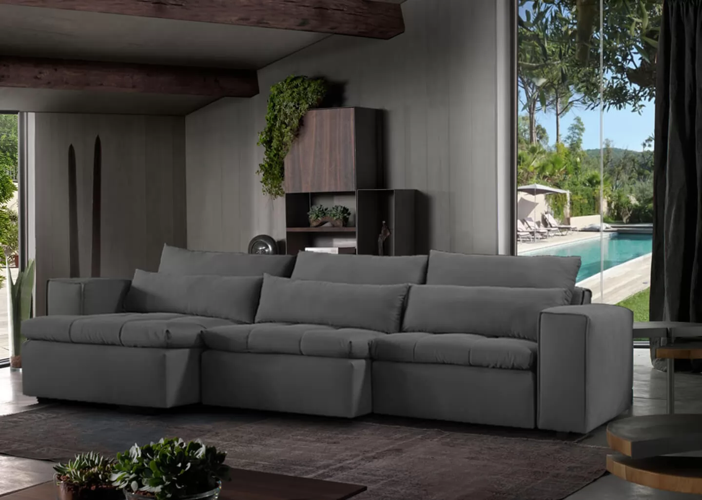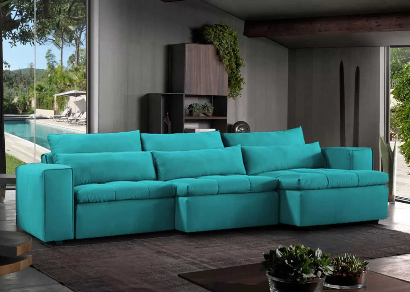 Caixade assento com percinta elástica padrão italiano, revestida com espuma depoliuretano densidade 28 e recoberto por manta de fibra.