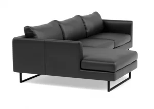 O sofá é perfeito para apartamentos, mas sua simplicidade de linhas limpas se sente em casa em qualquer lugar.