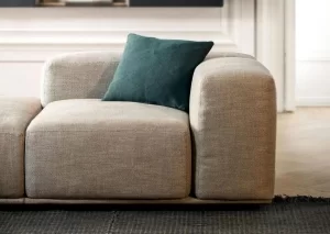 ENCOSTO: de Almofadas fixas, com enchimento em espuma de poliuretano densidade 28 soft, recoberta por manta de fibra de poliéster.