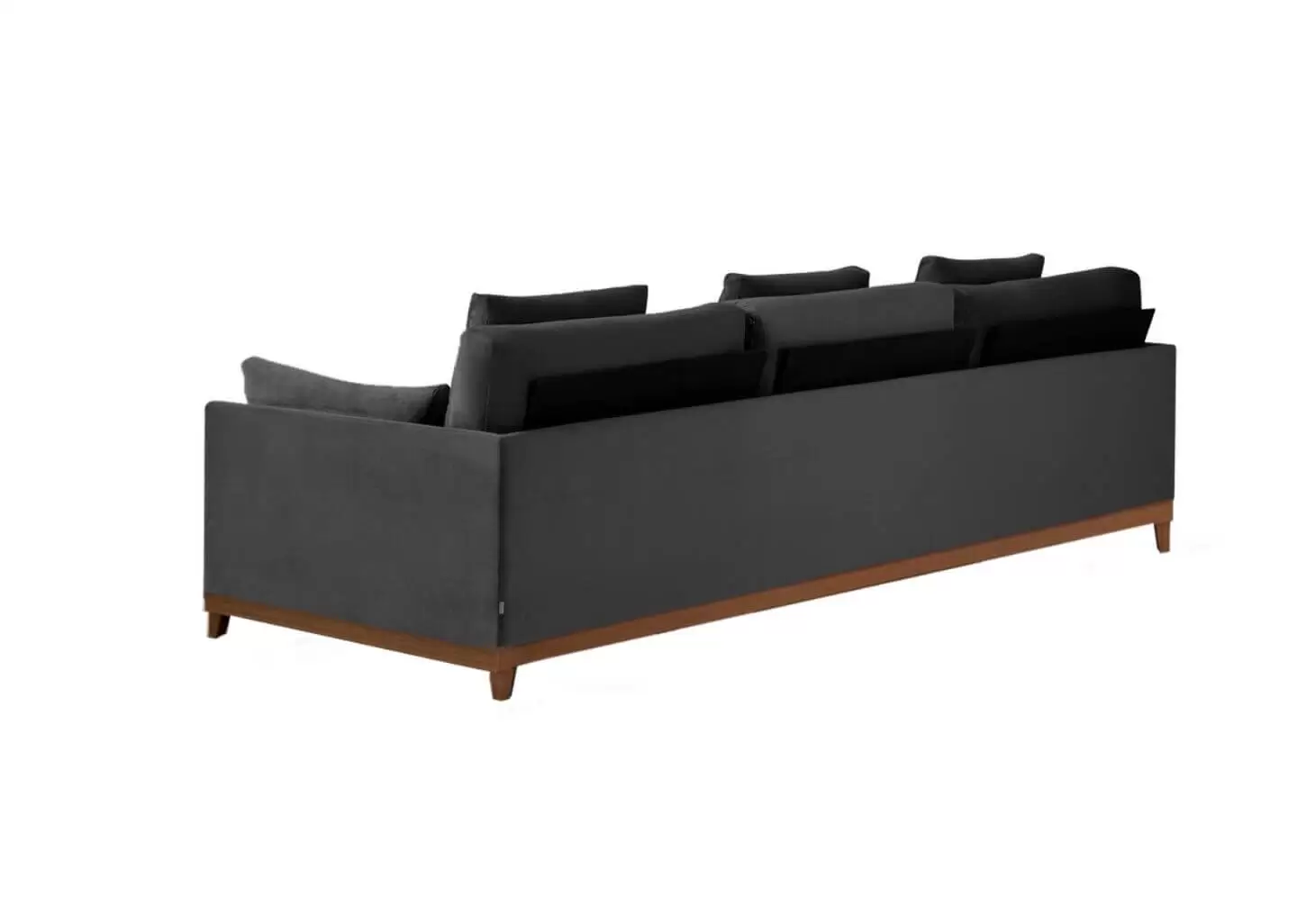 Caixa de assento com percinta elástica padrão italiano, revestida com espuma de poliuretano densidade 28 e recoberto por manta de fibra.