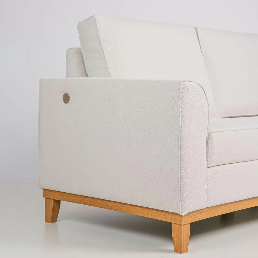BRAÇOS: Estrutura emmadeira de Eucalipto Tratada, Aparelhada e livre de infestações, revestido comespuma de poliuretano densidade 30 e recoberto por manta de fibra de poliéster