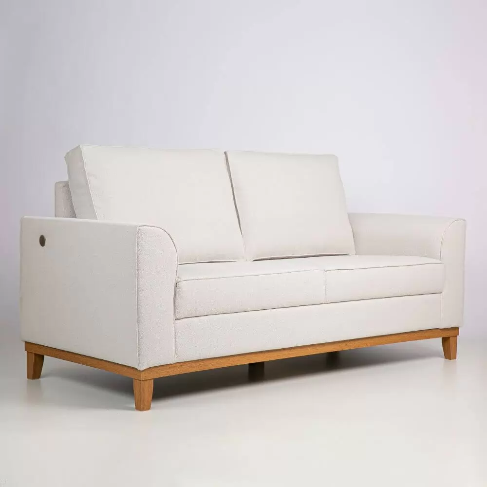 Caixade assento com percinta elástica padrão italiano, revestida com espuma depoliuretano densidade 28 e recoberto por manta de fibra.