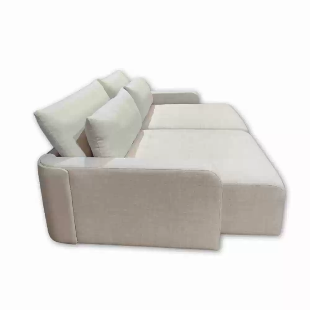 BRAÇOS: Estrutura em madeira de Eucalipto Tratada, Aparelhada e livre de infestações, revestido com espuma de poliuretano densidade 30 e recoberto por manta de fibra de poliéster