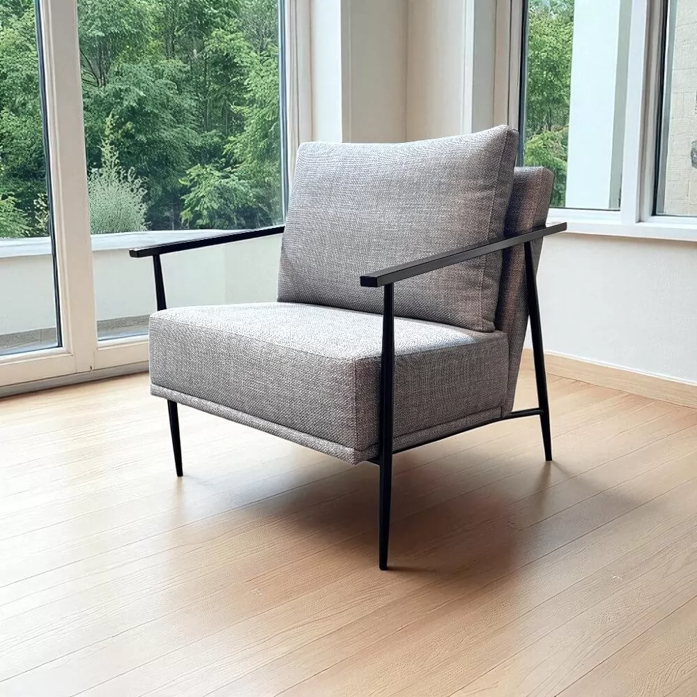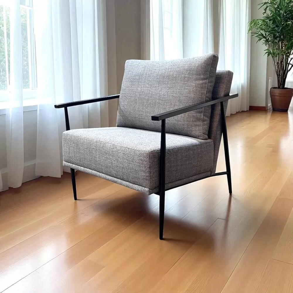 A Poltrona Rodan apresenta um design contemporâneo que se destaca pelo equilíbrio entre linhas retas e curvas suaves, conferindo um toque de sofisticação a qualquer ambiente. Sua estrutura robusta em aço combina perfeitamente com o acabamento delicado, tornando-a uma peça imponente e, ao mesmo tempo, versátil para diversas decorações.